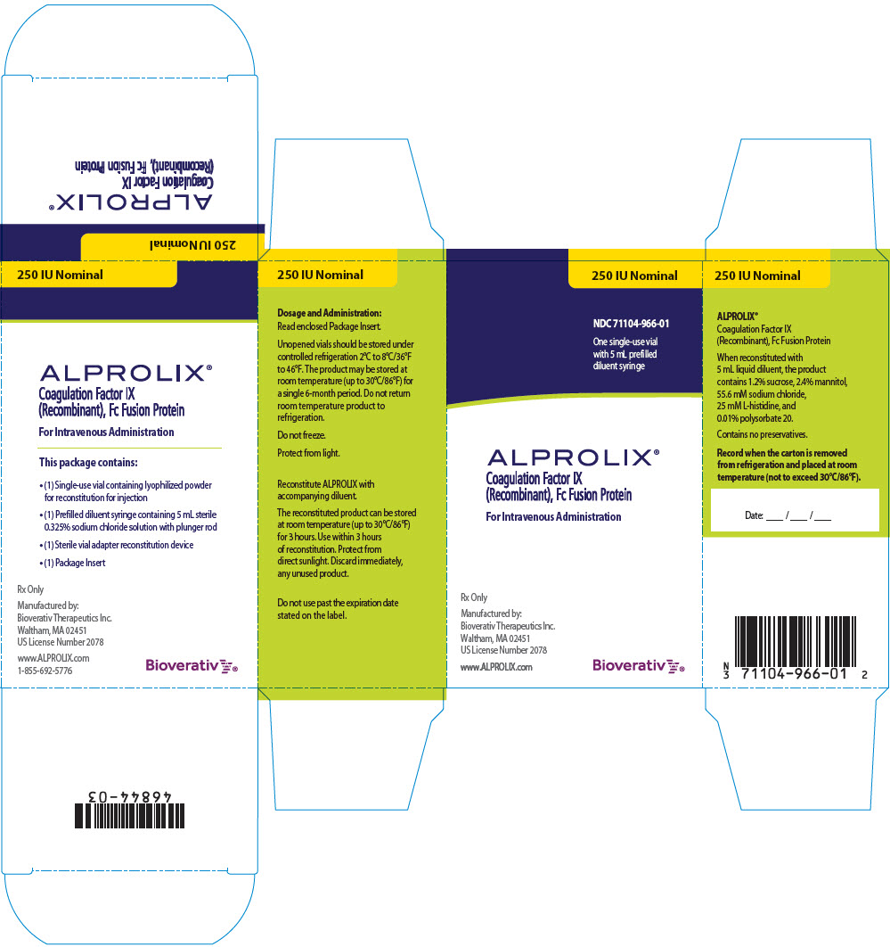 Alprolix (Coagulation Facto IX (Recombinant Fc Fusion Protein) is a (prescription drug, prescription medication, or prescription medicine) pharmaceutical drug that legally requires a medical prescription to be dispensed.