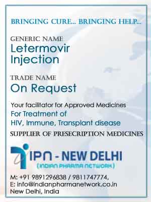 If LETERMOVIR Tablets are not yet approved or available in your area, you may request its price in India under a specific brand name through IPN. For assistance and guidance, you can contact us by providing complete details. Our pharmaceutical expert will help you find a suitable and practical solution to your query. To receive comprehensive support, please call us at +91 9891 296 838 (Mr. Tarun) / +91 9811 747 774 (Mr. Neeraj).