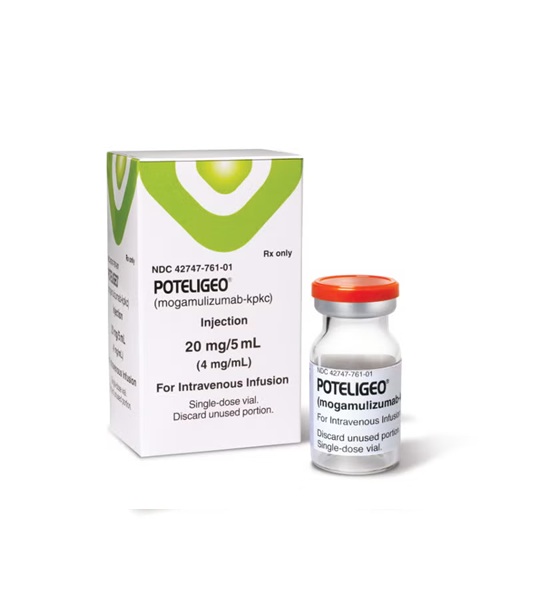 POTELIGEO is a CC chemokine receptor type 4 (CCR4)-directed monoclonal antibody indicated for the treatment of adult patients with relapsed or refractory mycosis fungoides or Sézary syndrome after at least one prior systemic therapy